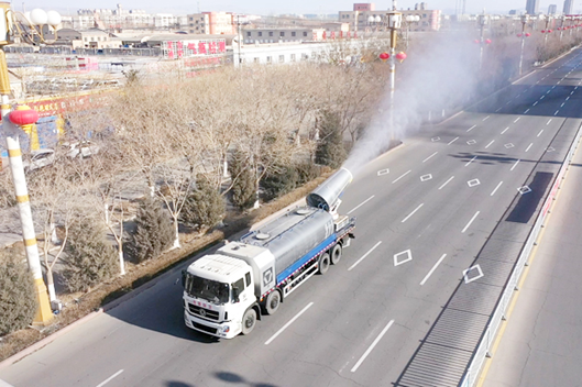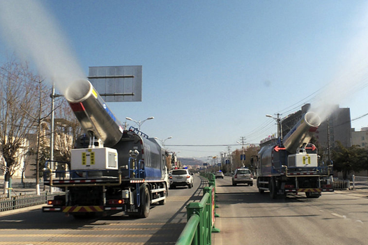 作業(yè)過(guò)程中,多功能抑塵車通過(guò)高壓將一定科學(xué)比例的消毒水進(jìn)行霧化并從風(fēng)筒中噴射,噴灑后快速揮發(fā),對(duì)環(huán)境無(wú)害。該產(chǎn)品能夠充分發(fā)揮靈活機(jī)動(dòng)作業(yè)快、水珠細(xì)密滲透力強(qiáng)、噴灑有力射程遠(yuǎn)等優(yōu)勢(shì),確保全覆蓋、零死角對(duì)重點(diǎn)區(qū)域進(jìn)行消毒、殺菌。