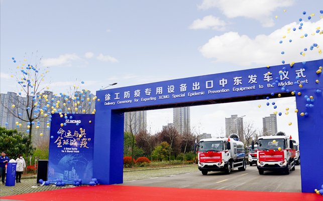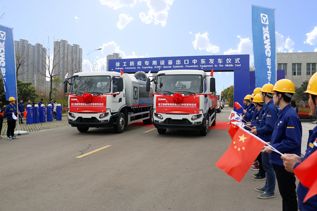 陽(yáng)春三月,暖風(fēng)和煦。3月30日,徐工防疫專用設(shè)備批量出口中東發(fā)車儀式在徐工環(huán)境產(chǎn)業(yè)基地隆重舉行。數(shù)十臺(tái)多功能抑塵車佩戴紅花、整齊列隊(duì),即將空運(yùn)發(fā)至中東,為海外疫情防控貢獻(xiàn)來(lái)自中國(guó)的徐工力量。