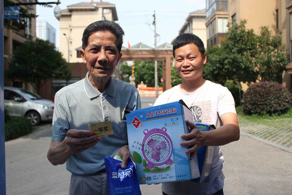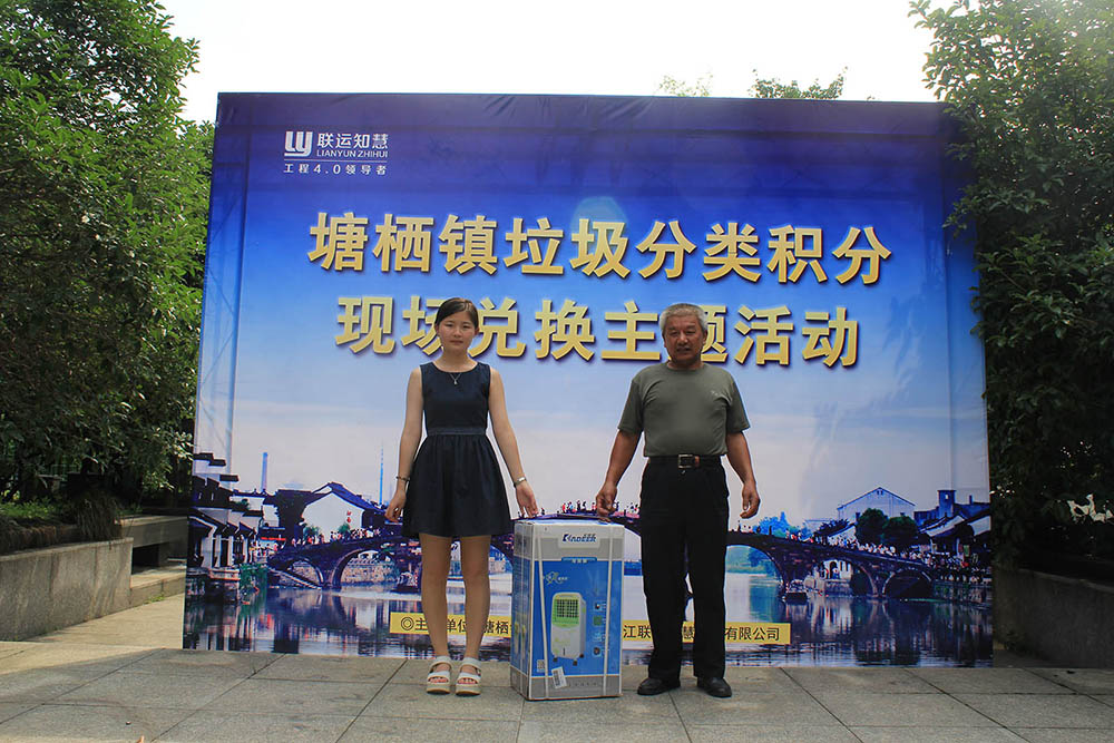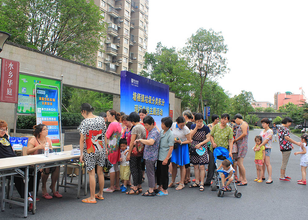 時(shí)光飛逝,轉(zhuǎn)眼間2016年已經(jīng)進(jìn)入下半年。在大家的共同努力下,塘棲三個(gè)小區(qū)整體環(huán)境有了很大的改善。7月7日和8日,為了感謝居民的垃圾分類熱情,塘棲鎮(zhèn)人民政府和浙江聯(lián)運(yùn)知慧科技有限公司共同舉辦“垃圾分類積分現(xiàn)場(chǎng)兌換主題活動(dòng)”,包括塘棲鎮(zhèn)政府、社區(qū)、物業(yè)、聯(lián)運(yùn)知慧公司、浙江理工大學(xué)社會(huì)實(shí)踐團(tuán)隊(duì)、三個(gè)小區(qū)居民等數(shù)百人參加了本次活動(dòng),在開(kāi)心收獲禮品的同時(shí),更加鞏固了垃圾分類知識(shí)。